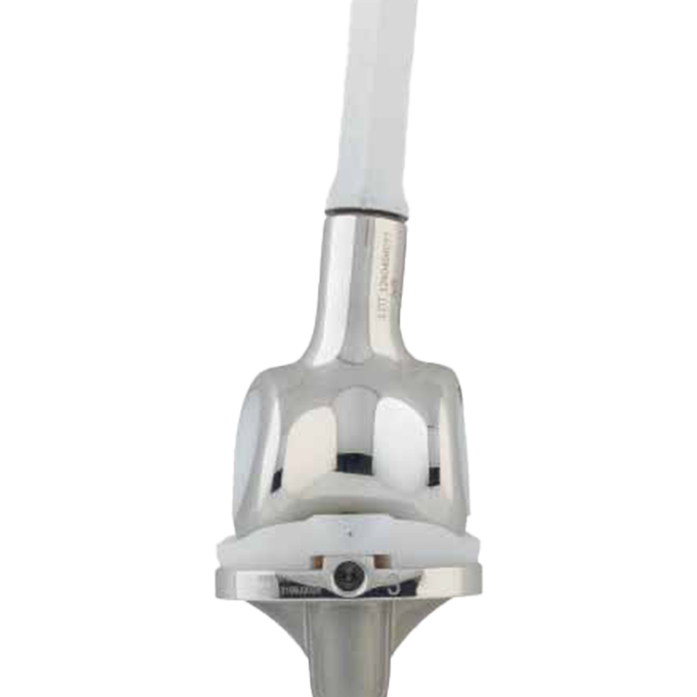 Sur le plan fémoral, il inclut un composant métaphysaire, une extension possible de 25mm, des vis et des tiges anatomiques, cimentées ou sans ciment.